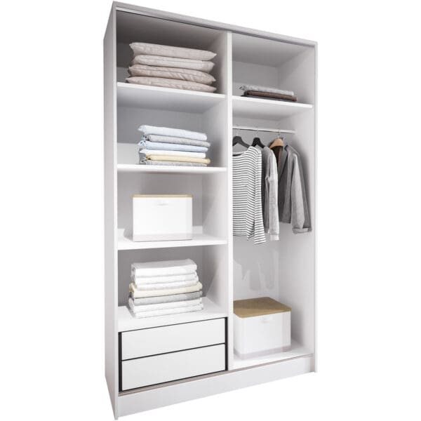 SKU: Korpus szafy przesuwnej 120 biały (okucia srebrne;1 drążek,szuflady))