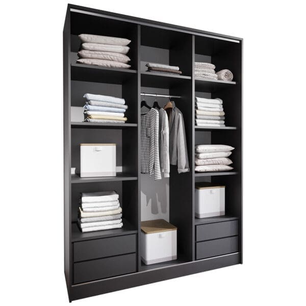 SKU: Korpus szafy przesuwnej 150 czarny (okucia srebrne;1 drążek,szuflady))