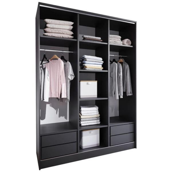 SKU: Korpus szafy przesuwnej 150 czarny(okucia srebrne;2 drążki,szuflady))