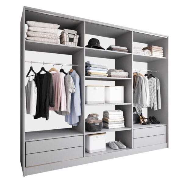 SKU: Korpus szafy przesuwnej 250 szary (okucia srebrne;2 drążki,szuflady)