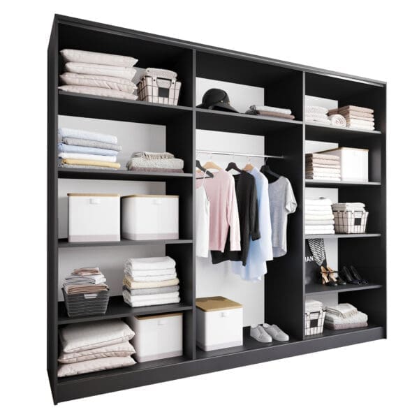 SKU: Korpus szafy przesuwnej 270 czarny (okucia czarne;1 drążek, bez szuflad)) Kategorie: , Štítek: