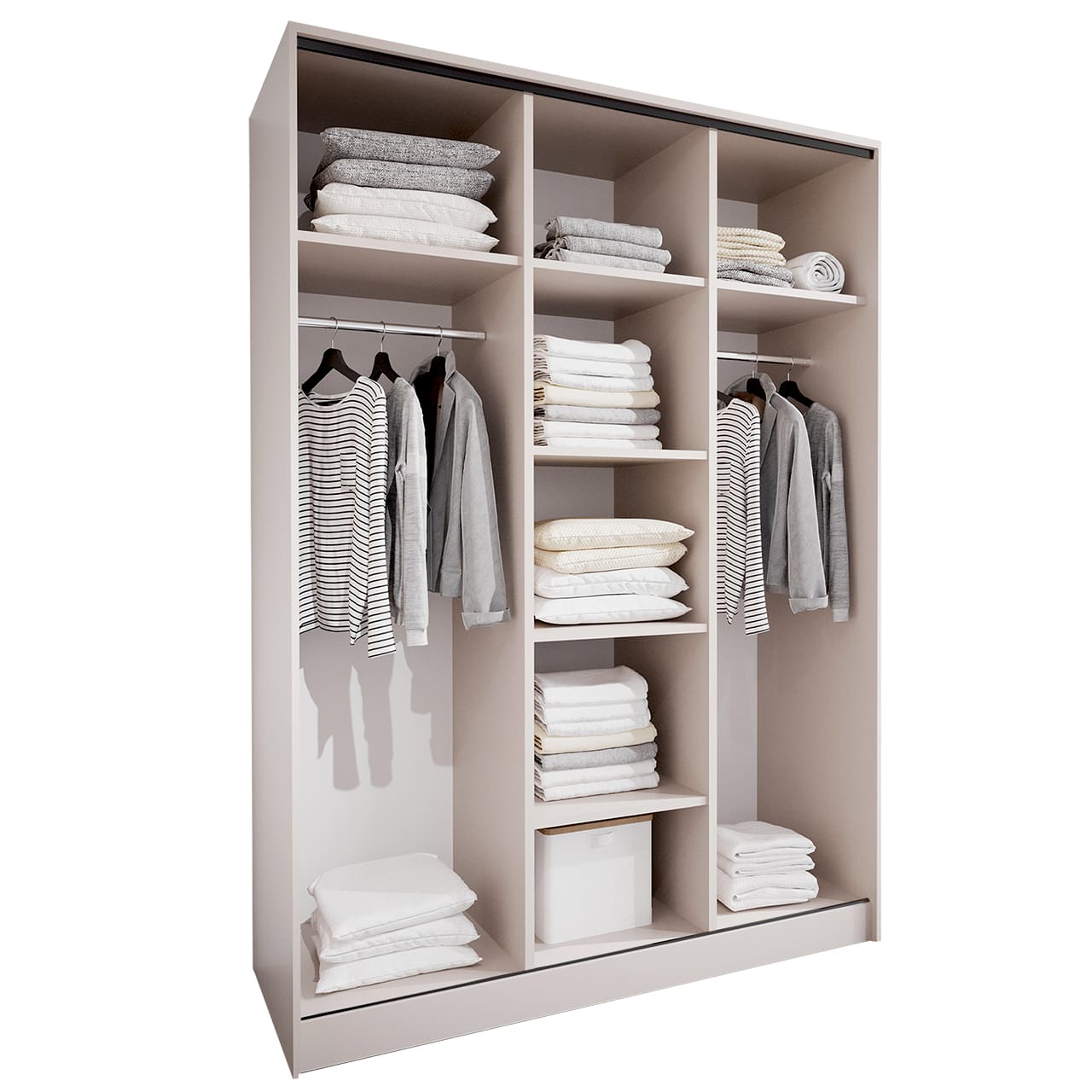 Skříň otevřená MERV K6 150 v kašmírovém dekoru je navržena pro praktické každodenní použití: otevřený přístup usnadňuje výběr oblečení a přehlednost uspořádání šetří čas při ranním oblékání. Díky neutrálnímu dekoru lze skříň snadno sladit s různými interiéry.