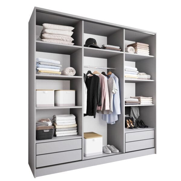SKU: Korpus szafy przesuwnej 200 szary (okucia czarne;1 drążek, szuflady))