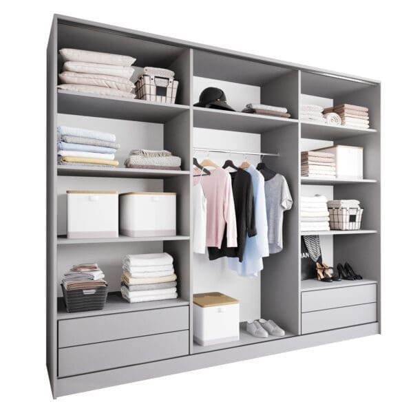 SKU: Korpus szafy przesuwnej 250 szary (okucia czarne;1 drążek, szuflady))