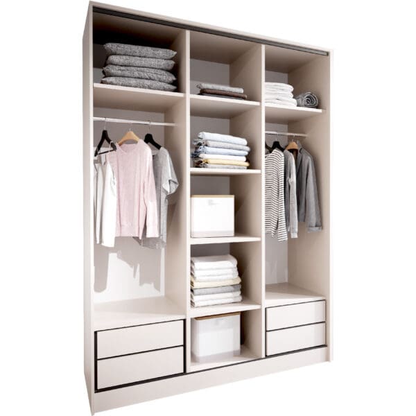 SKU: Korpus szafy przesuwnej 150 kaszmir (okucia czarne;2 drążki, szuflady)