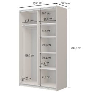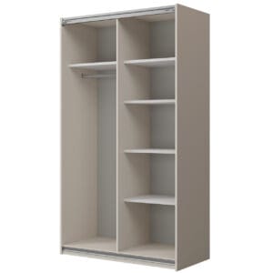 Skříň s posuvnými dveřmi v dekoru kašmír nabízí praktické uložení oblečení a doplňků s důrazem na jednoduché každodenní použití. Díky posuvným dveřím je manipulace hladká a nábytek šetří prostor v místnosti.
