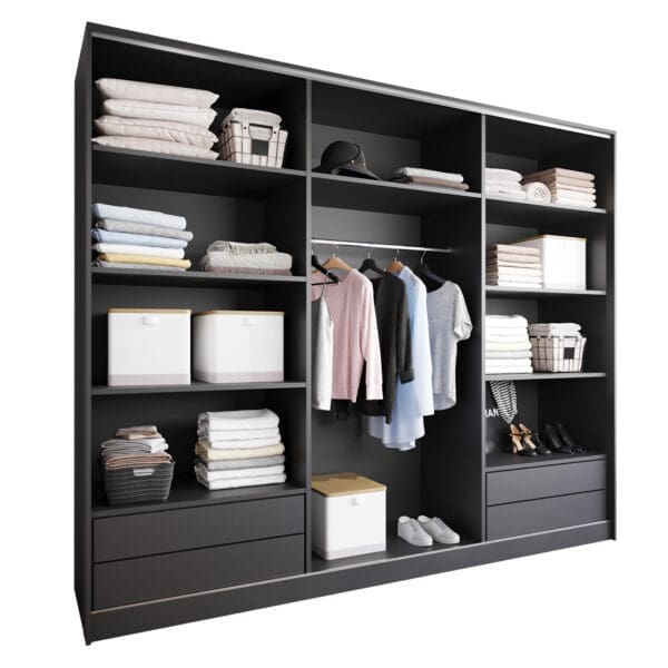 SKU: Szafa przesuwna 270 czarna;szprosy;bez lustra; z szufladami