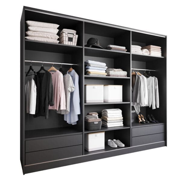 SKU: Szafa przesuwna 270 czarna;szprosy;bez lustra; z szufladami