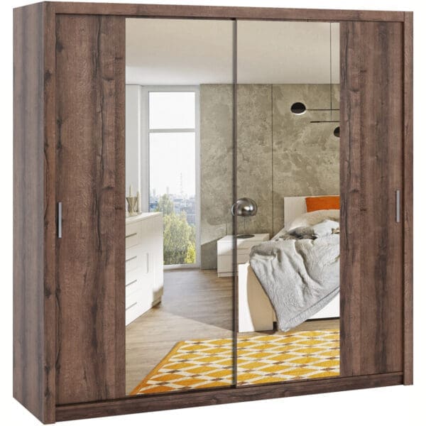 Skříň s posuvnými dveřmi se zrcadlem 220 BONEY BO11 dub monastery
