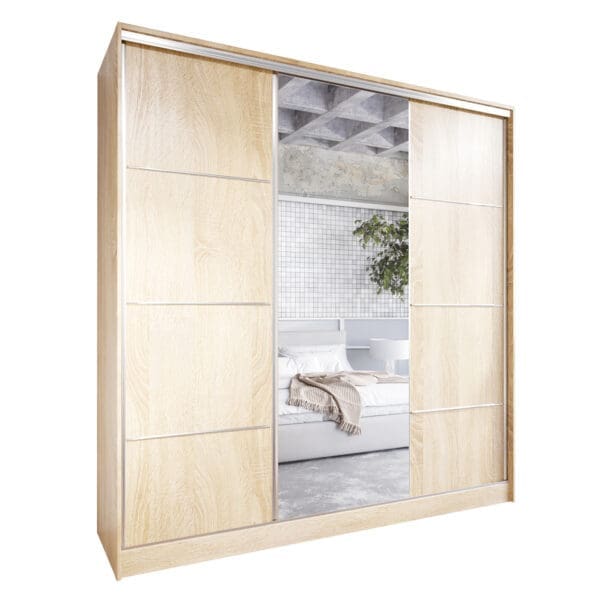 Skříň s posuvnými dveřmi se zrcadlem a zásuvkami ELIA D 200 sonoma