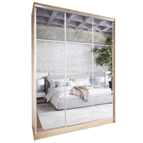 Skříň s posuvnými dveřmi se zrcadlem GRANO A 150 sonoma