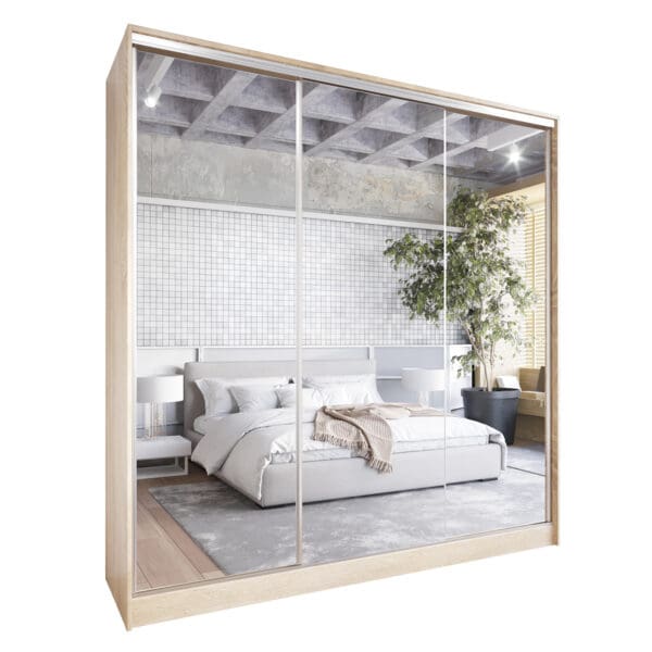 Skříň s posuvnými dveřmi se zrcadlem a zásuvkami GRANO C 180 sonoma
