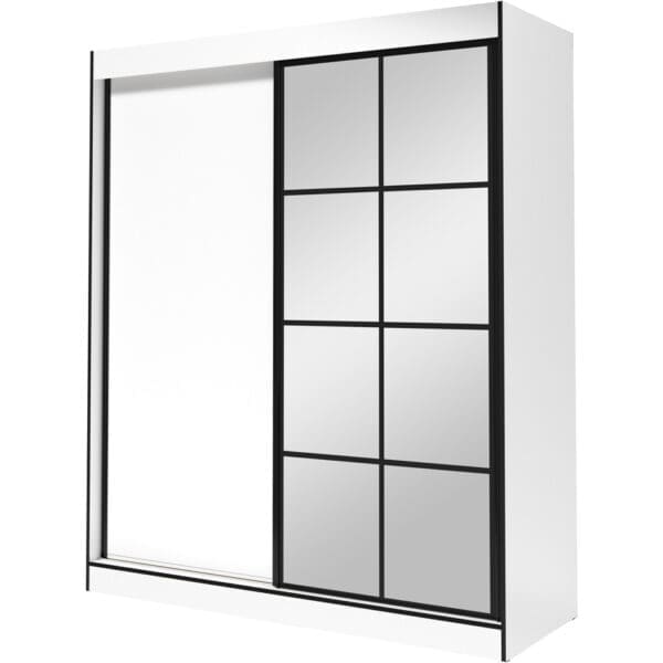 Skříň s posuvnými dveřmi se zrcadlem ASLO II 180 bílá / černá