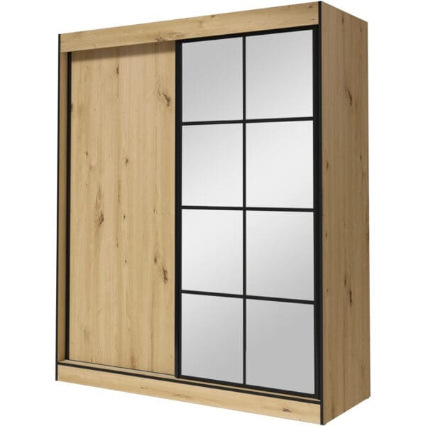 Skříň s posuvnými dveřmi se zrcadlem ASLO II 180 dub artisan / černá