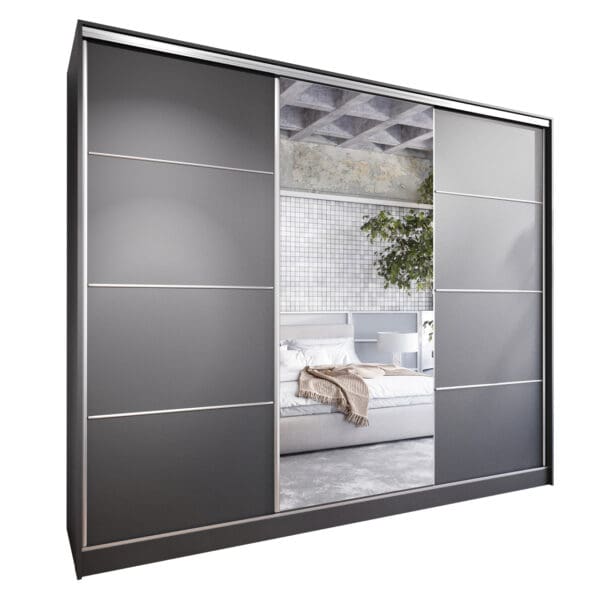 Skříň s posuvnými dveřmi se zrcadlem ELIA A 270 černá