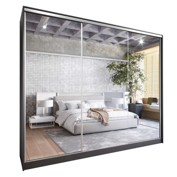 SKU: Szafa przesuwna 250 czarna; 3 lustra; bez szuflad