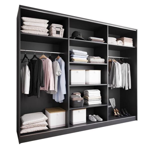 SKU: Szafa przesuwna 250 czarna; 3 lustra; bez szuflad