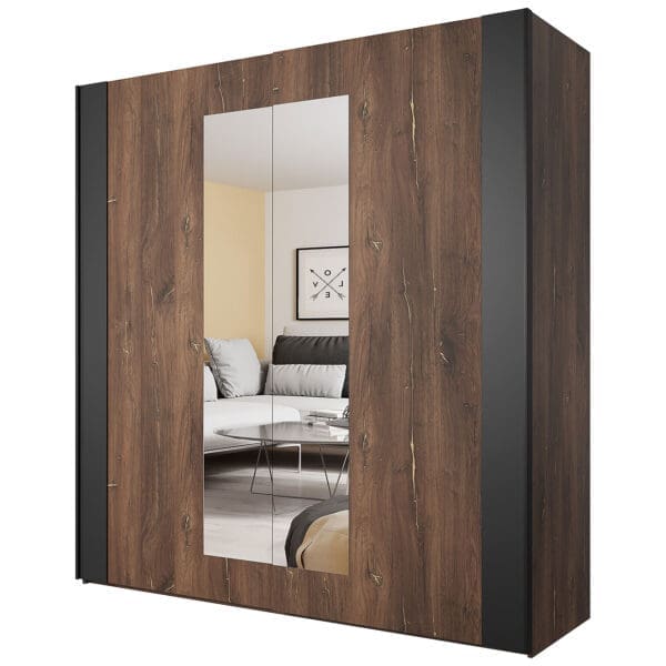 Skříň s posuvnými dveřmi se zrcadlem SAGMA SG18 dub flagstaf ocel / černáSkříň s posuvnými dveřmi se zrcadlem SAGMA SG18 dub artisan / černá