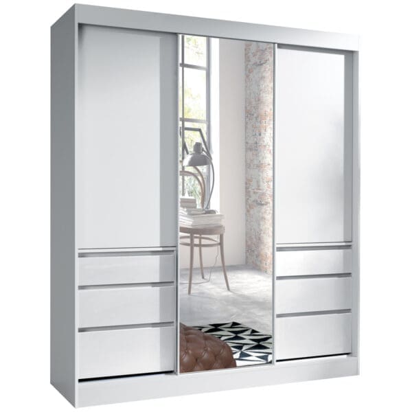 Skříň s posuvnými dveřmi TURKS 180 se zásuvkami bílá