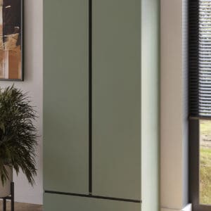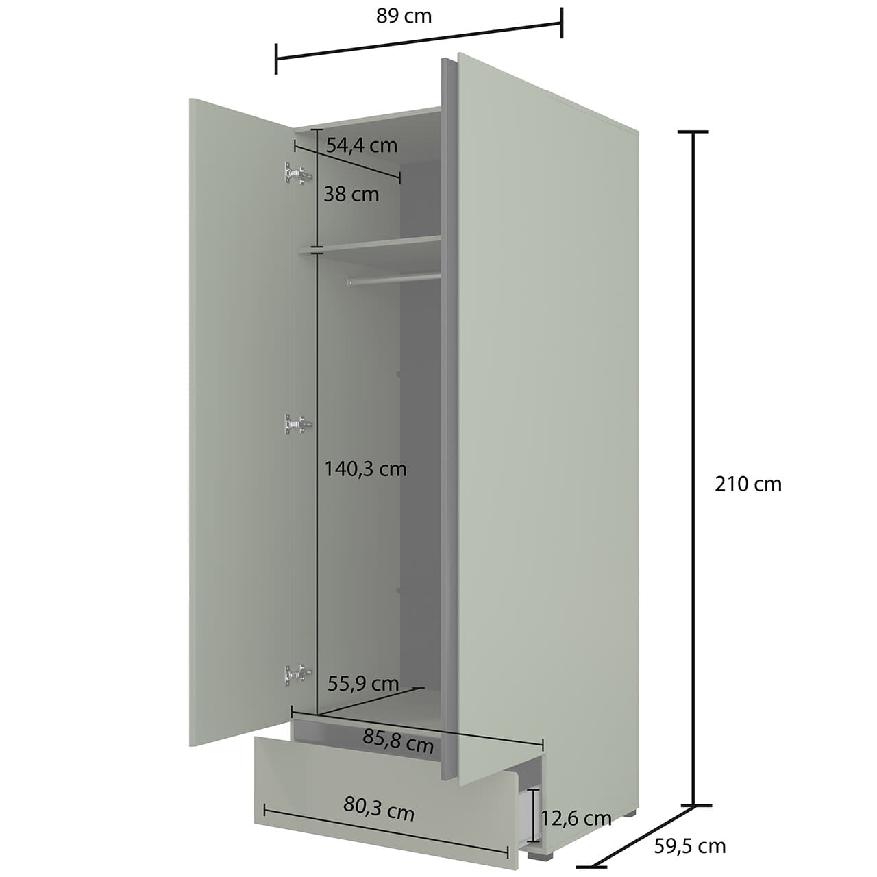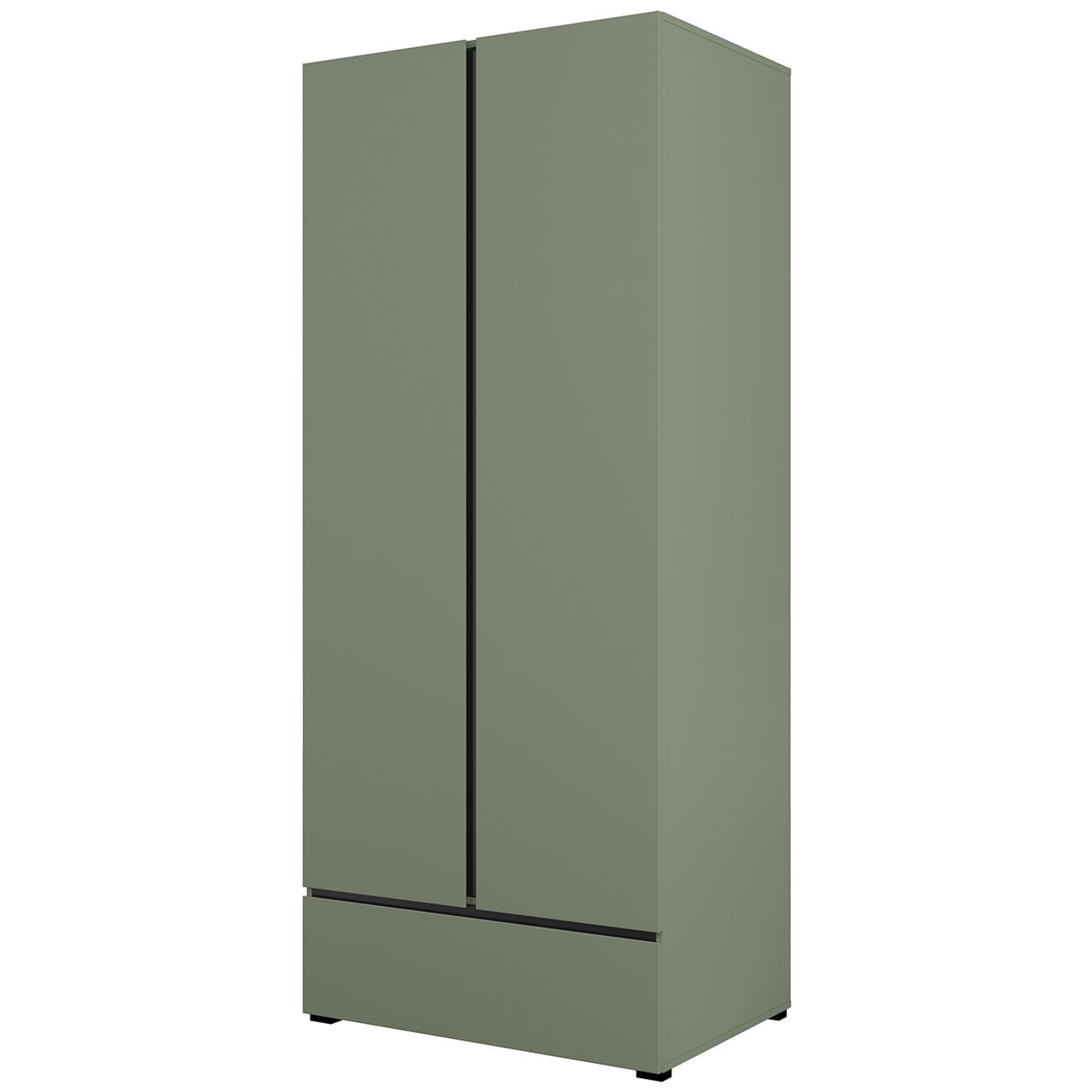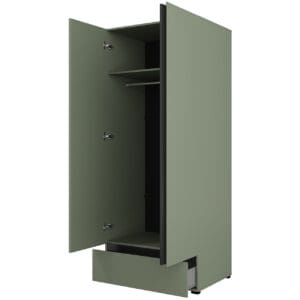 Praktická skříň s šuplíkem CROSI 18 v zeleném a černém provedení poskytuje funkční a úsporné místo pro ukládání oblečení, sezónních doplňků nebo domácího textilu. Kombinace dveří a spodního šuplíku usnadňuje organizaci a rychlý přístup k nejpoužívanějším věcem.