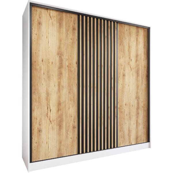 SKU: Szafa przesuwna 200 biały/wotan/czarny;1 lamel;szuflady