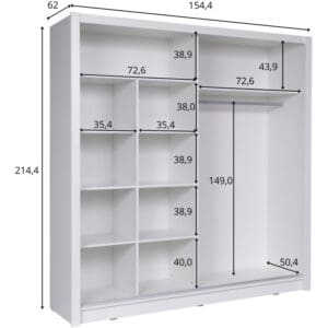 • Posuvné dveře: šetří místo a umožňují pohodlný přístup k obsahu skříně.
