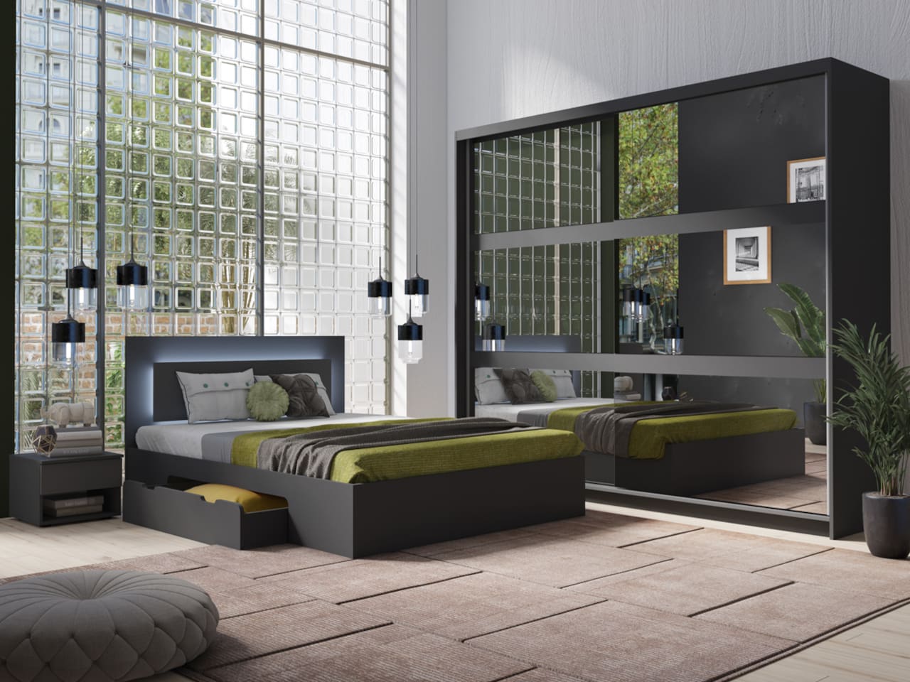 Skříň se zrcadlem 230 NINO 01 šedá grafit