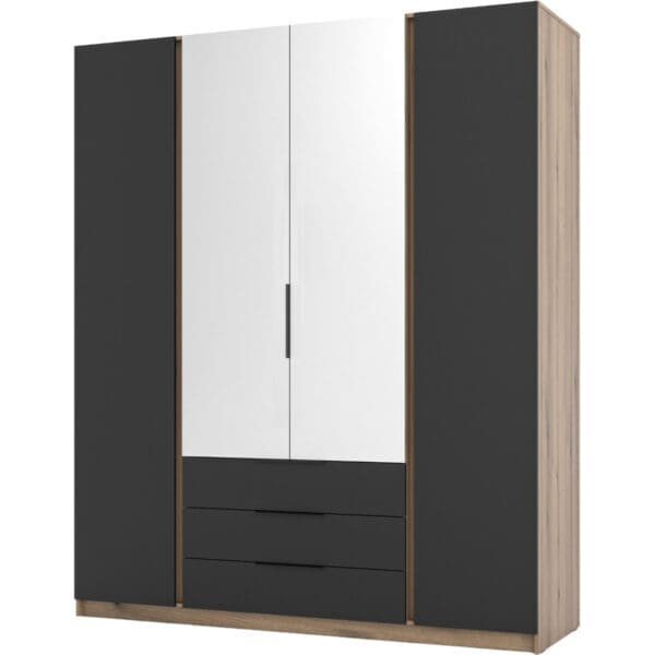 Skříň se zrcadlem a šuplíky KAYA 200cm 06 dub evoke / černá