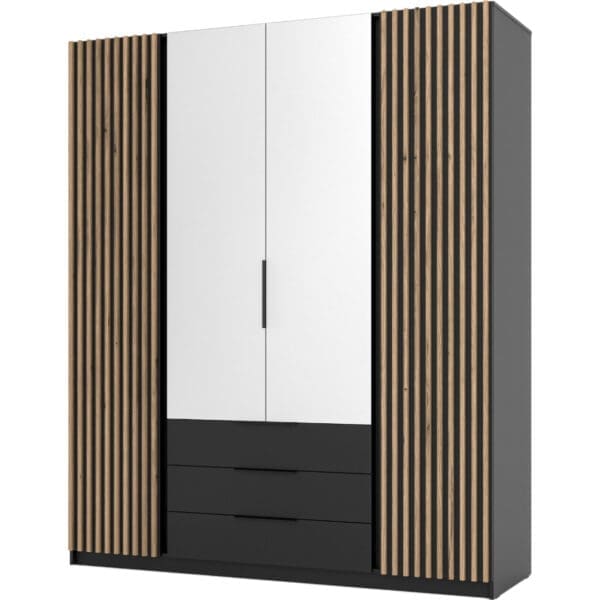 Skříň se zrcadlem a šuplíky KAYA 200cm 05 černá / dub evoke / černá