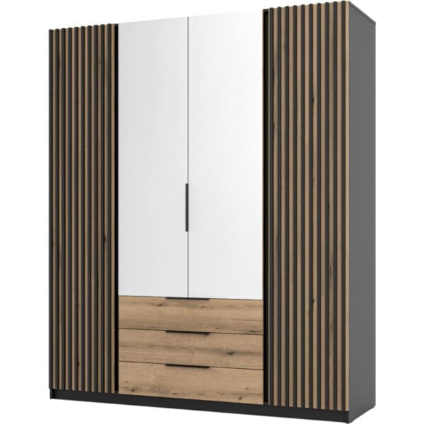 Skříň se zrcadlem a šuplíky KAYA 200cm 02 dub evoke / černá