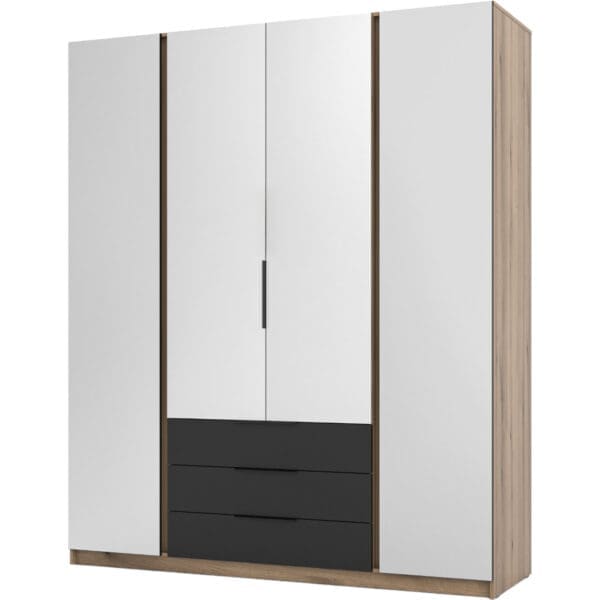 Skříň se zrcadlem a šuplíky KAYA 200cm 05 černá / dub evoke / černá