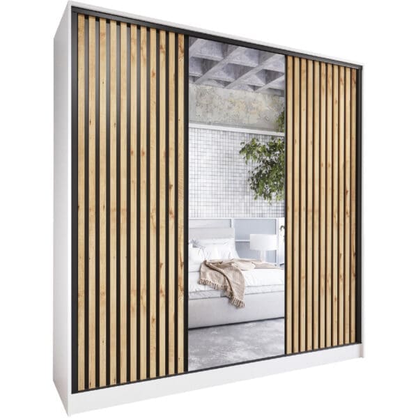 Skříň se zrcadlem LIPI A 180 bílá / dub wotan / černá