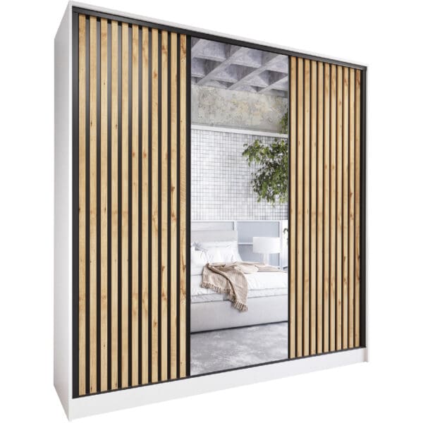 SKU: Szafa przesuwna 180 biały/wotan/czarny;2lamel+lustro;szuflady Kategorie: , , Štítek: