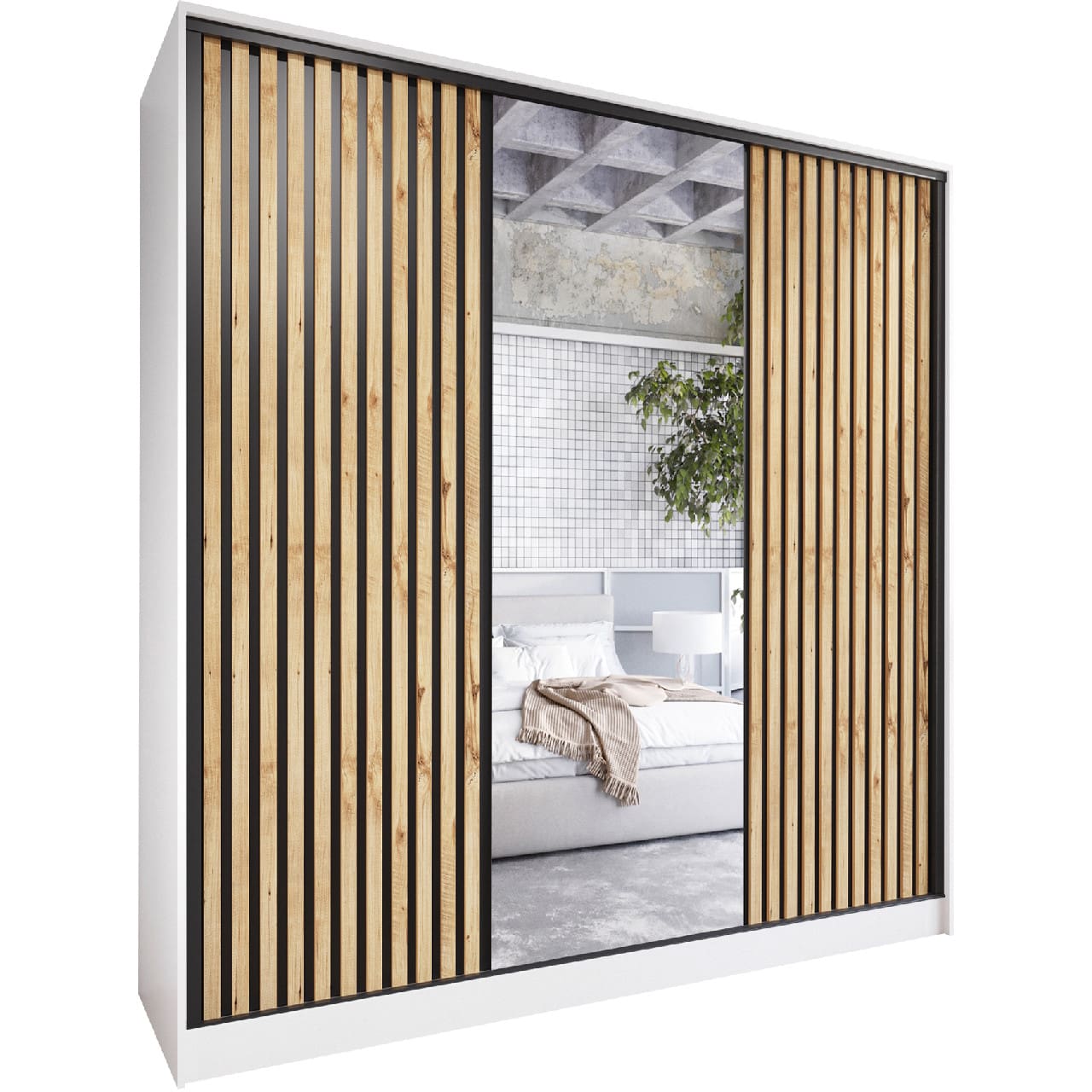 Skříň se zrcadlem LIPI A 200 bílá / dub wotan / černá