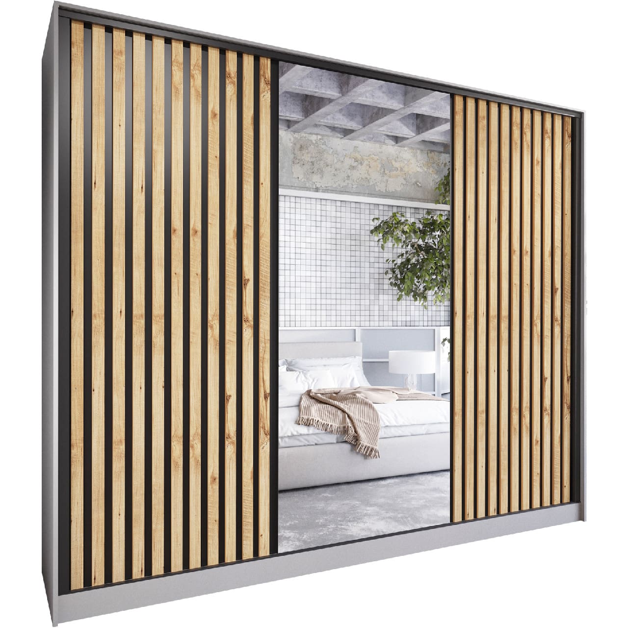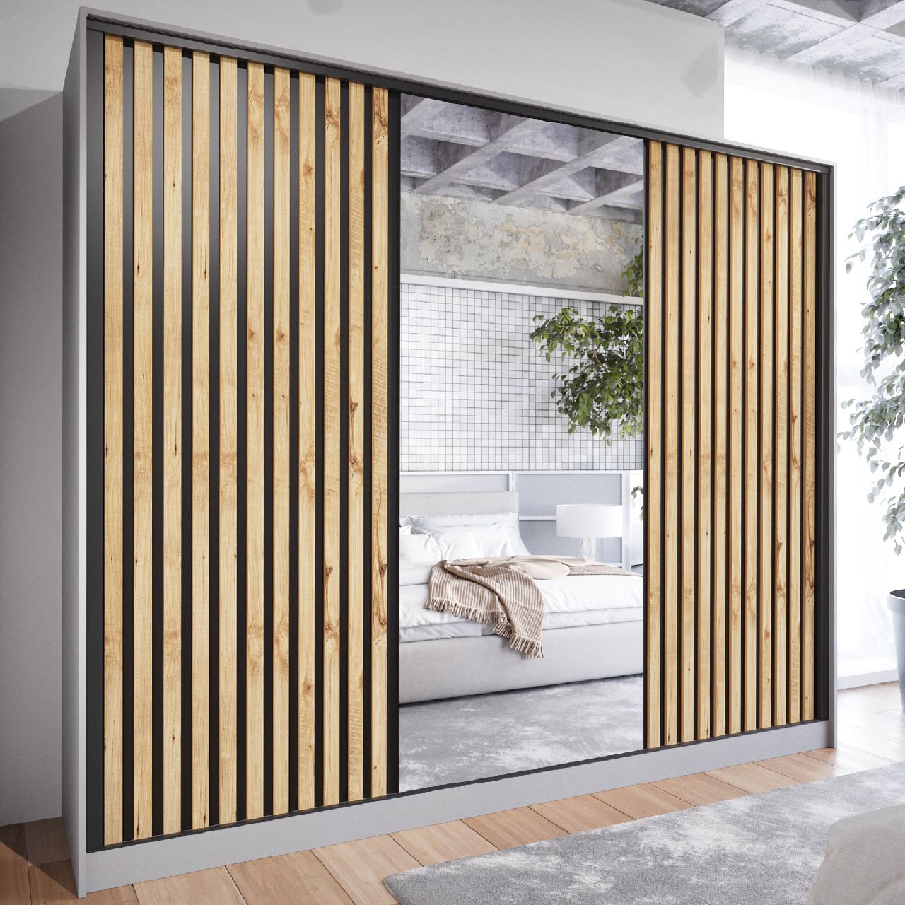 SKU: Szafa przesuwna 250 szary/wotan/czarny;2lamel+lustro;szuflady