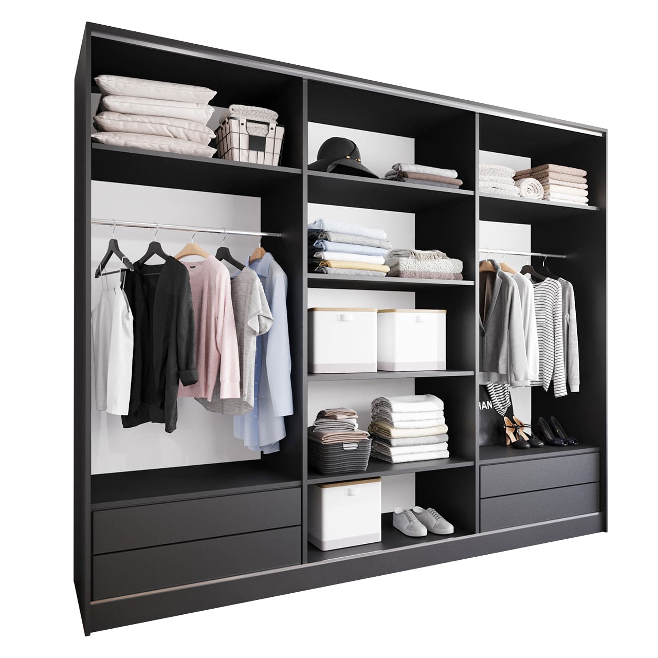 SKU: Szafa przesuwna 270 czarny/wotan/czarny;2lamel+lustro;szuflady