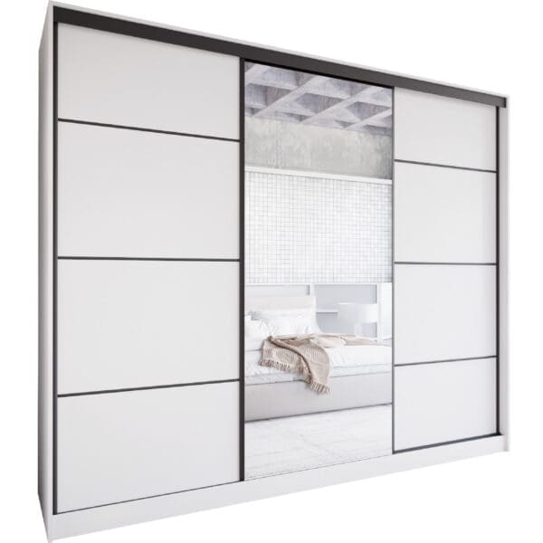 SKU: Szafa przesuwna 250 biały;szprosy czarne;1 lustro;szuflady