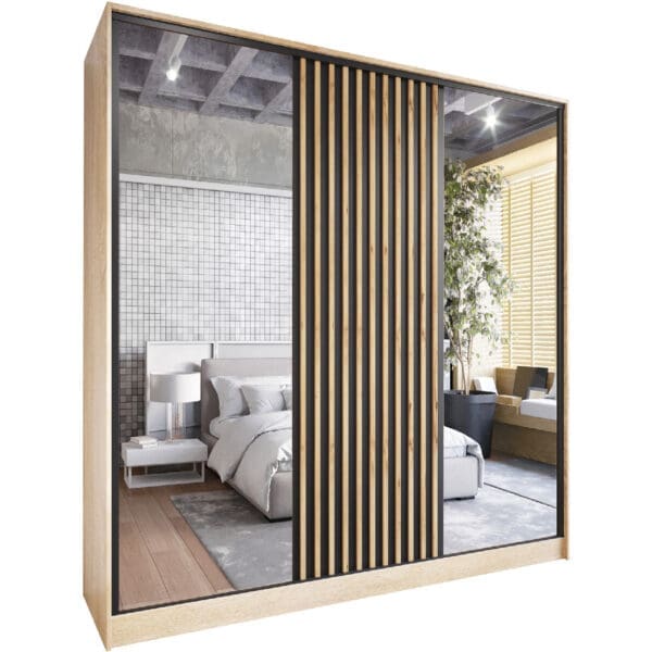 SKU: Szafa przesuwna 200 sonoma/wotan/czarny;1lamel+2lustra;szuflady