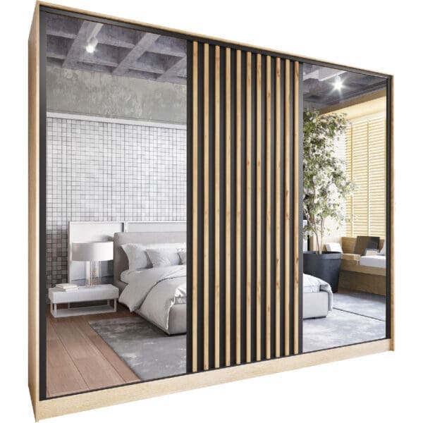 SKU: Szafa przesuwna 270 sonoma/wotan/czarny;1lamel+2lustra;szuflady Kategorie: , , Štítek: