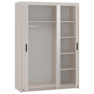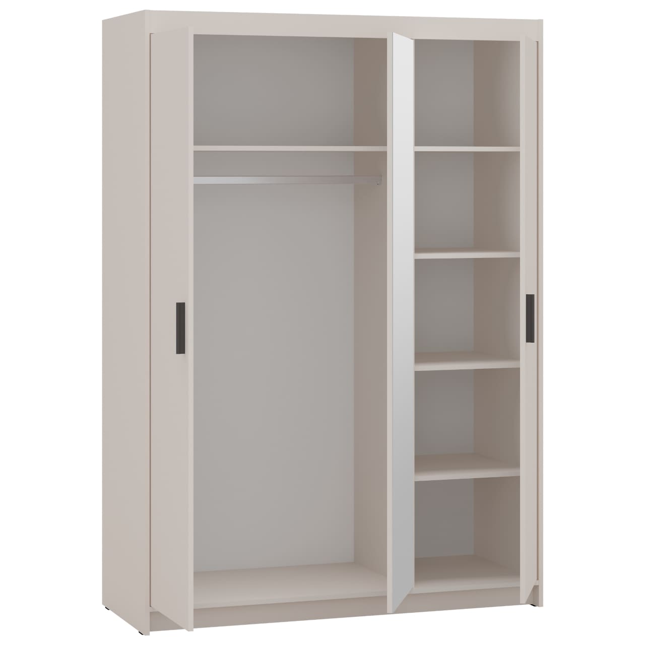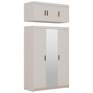 Skříň se zrcadlem ELENI 3D v pískově béžovém provedení přináší do interiéru čisté linie a uhlazený, reprezentativní vzhled. Integrované zrcadlo tvoří výrazný estetický prvek a současně zvyšuje praktičnost při oblékání.