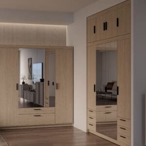 Praktická skříň se zrcadlem ELENI 4D2S v dekoru olejovaný dub je navržena pro každodenní používání v domácnosti. Kombinuje přehledné uložení oděvů se zrcadlem, které usnadní kontrolu vzhledu bez potřeby samostatného stojícího zrcadla.