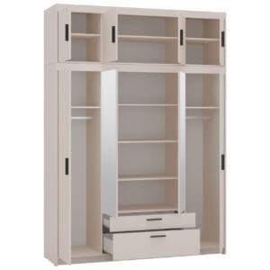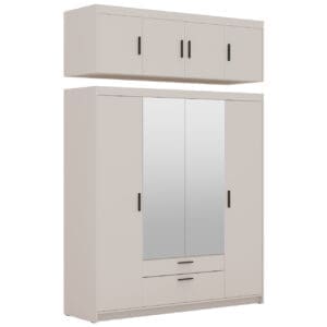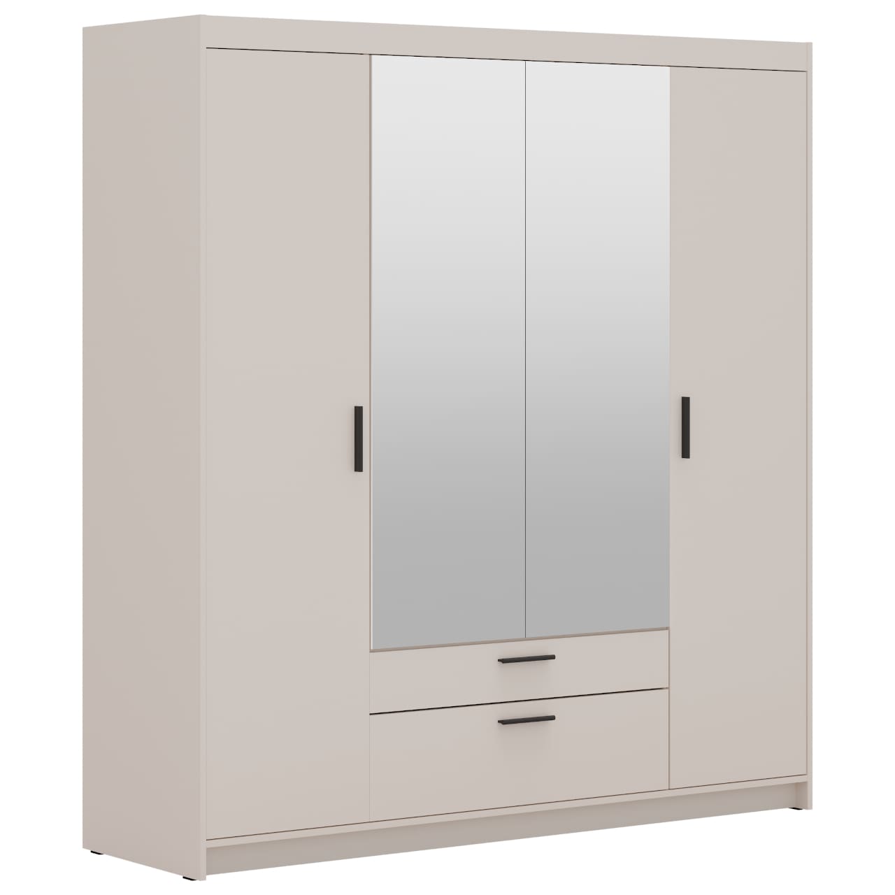 Skříň se zrcadlem ELENI 4D2S v pískově béžovém provedení klade důraz na komfort při každodenním používání. Vestavěné zrcadlo umožní rychlou kontrolu vzhledu, dveře a vnitřní uspořádání napomáhají pohodlnému a přehlednému ukládání oblečení, aby ranní přípravy probíhaly hladce a bez zbytečného hledání.