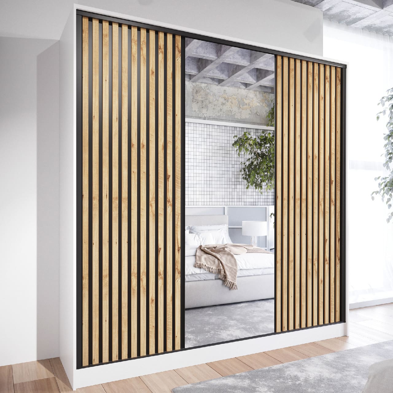 SKU: Szafa przesuwna 200 biały/wotan/czarny;2lamel+lustro;bez szuflad