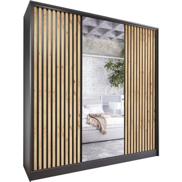 Skříň se zrcadlem LIPI A 200 černá / dub wotan
