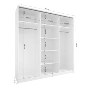 Praktická poznámka: před nákupem si ověřte, zda šířka a hloubka skříně odpovídají vašemu prostoru a že je místo pro posuvné dveře.