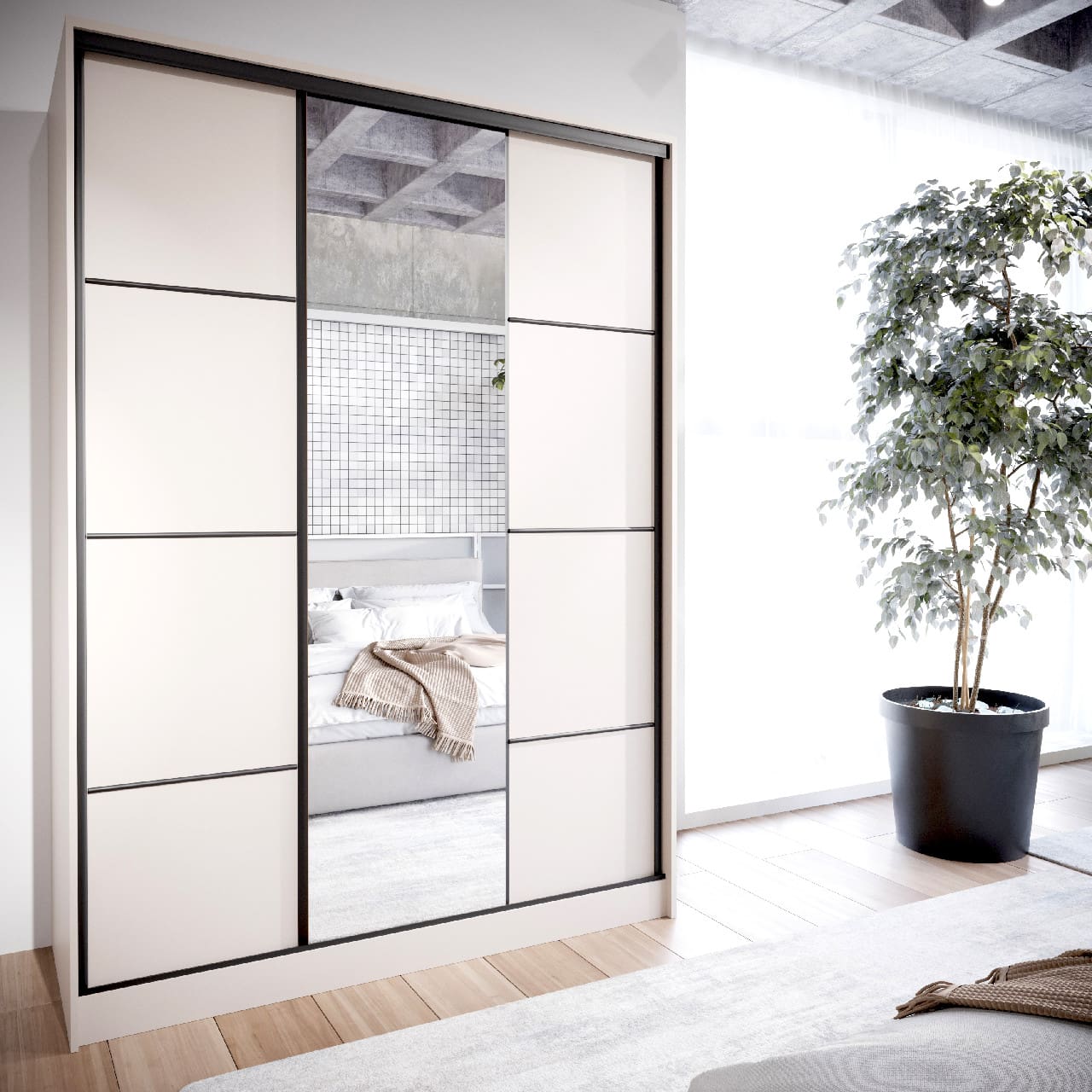 SKU: Szafa przesuwna 150 kaszmir;szprosy czarne;1 lustro; bez szuflad