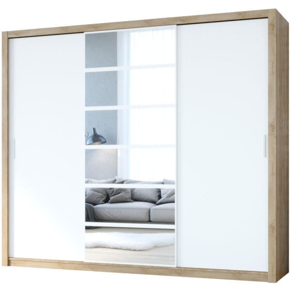 Skříň se zrcadlem PANAMA 250 dub artisan / bílá