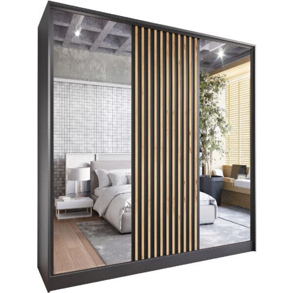 SKU: Szafa przesuwna 200 czarny/wotan/czarny;1lamel+2lustra;bez szuflad