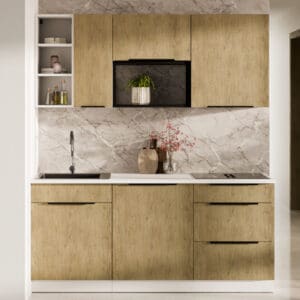 - Kompaktní úložný prostor: zásuvka a vnitřní police pro organizaci nádobí a doplňků.