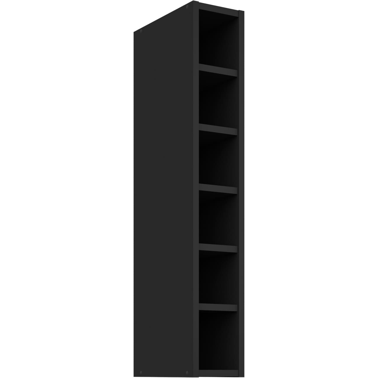 Úzká horní kuchyňská skříňka ERIS 64 v černém matu je navržena pro efektivní využití stěn v kuchyni. Díky vertikálnímu profilu zaplní úzké mezery nad pracovní deskou nebo mezi jinými skříňkami, aniž by zbytečně zabírala prostor.